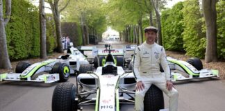 Jenson Button célèbre une réunion émouvante avec son Brawn GP F1...
